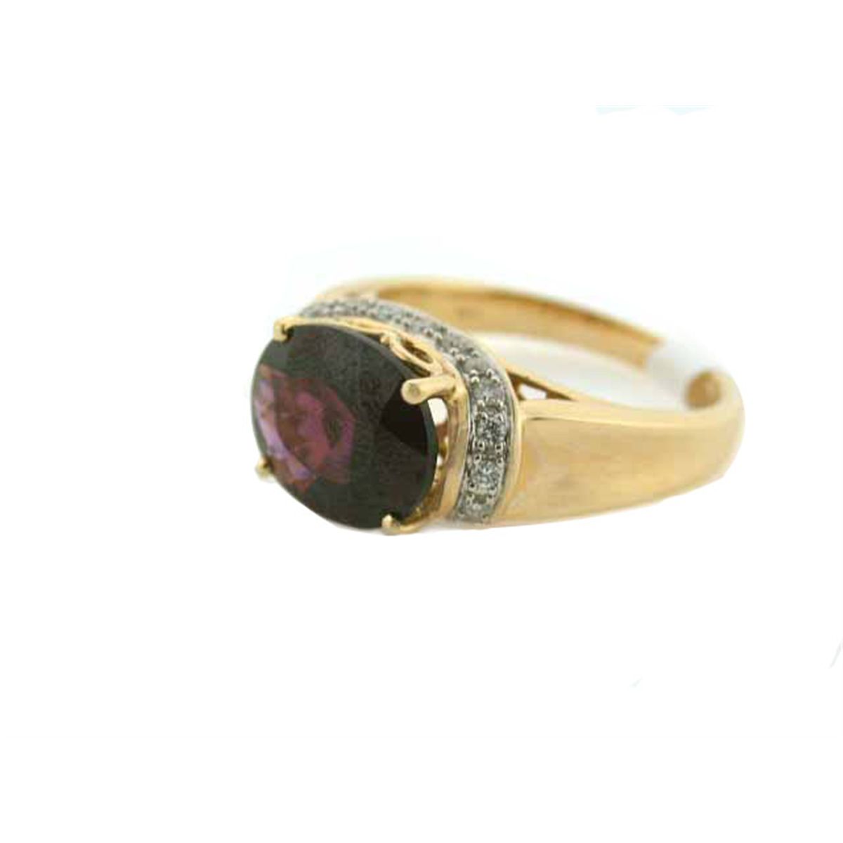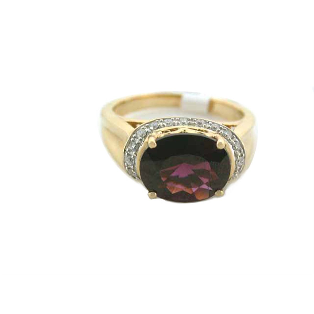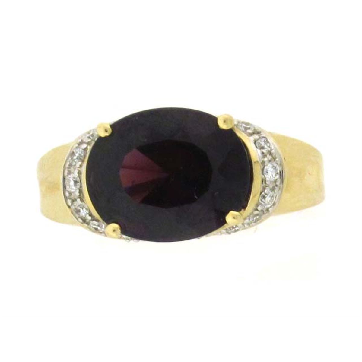 14k Yellow Gold Ring w/ Garnet - 2.70 and Diamonds - 0.23 carat. The ring size is 7 and weighs 6.10 grams.