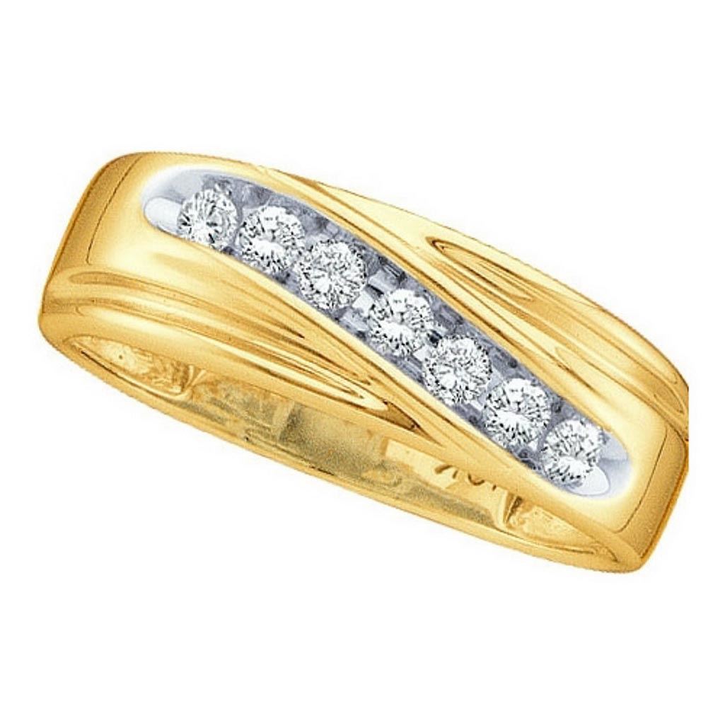 14k Yellow Gold Round Channel-set Natural Diamond 8-13 **|**|** 14k Yellow Gold Round Channel-set Natural Diamond 8-13 Mens Curved 2-tone Wedding Band 1/4 Cttw