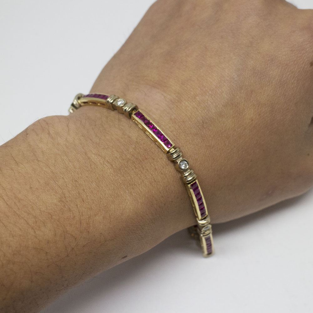 14k Yellow Gold Ruby.Diamond Bracelet-2
