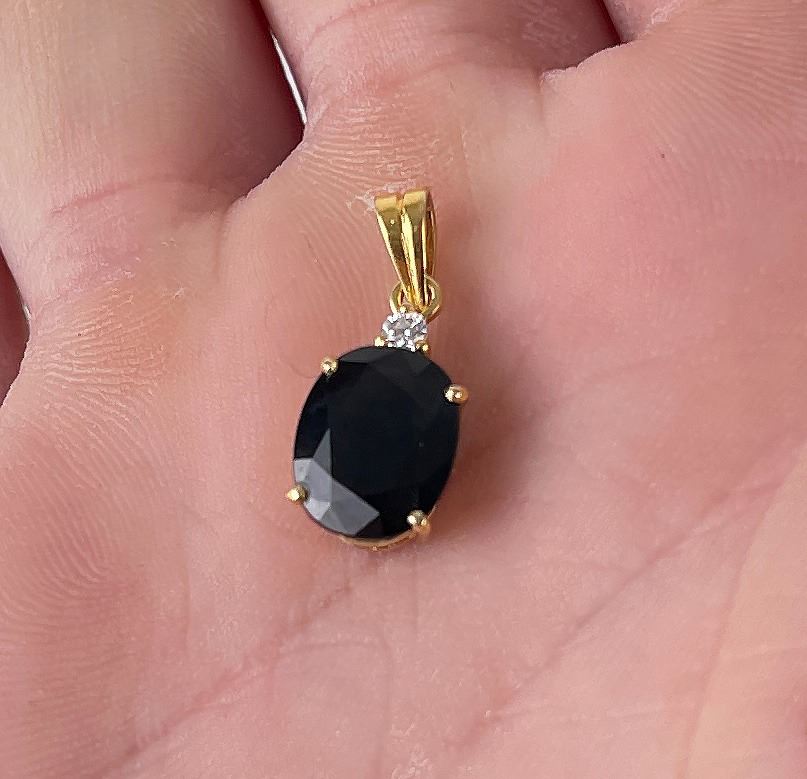 Very nice pendant. 14k Yellow Gold with Dark Blue Sapphire. 1.55 grams total weight.