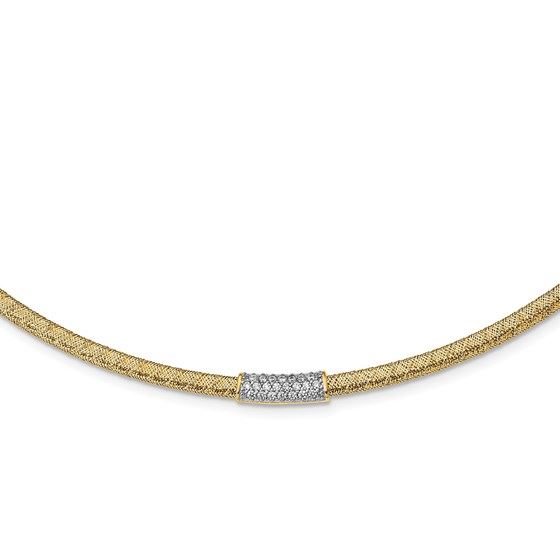 One piece 14k Yellow Gold Stretch CZ Mesh Necklace - 17.75 in.