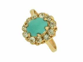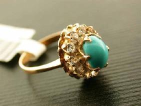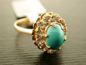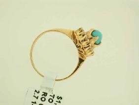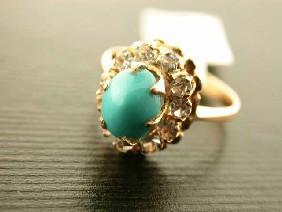 14k Yellow Gold Ring with Diamonds - 0.55 carat, Round cut, G color, VS clarity and Turquoise - 1.00 carat. The rin size is 5.5 and weighs 2.7 grams