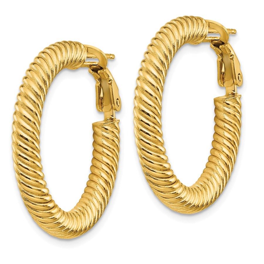 14k Yellow Gold Twisted Omega Back Hoop Earrings - 4x20 mm