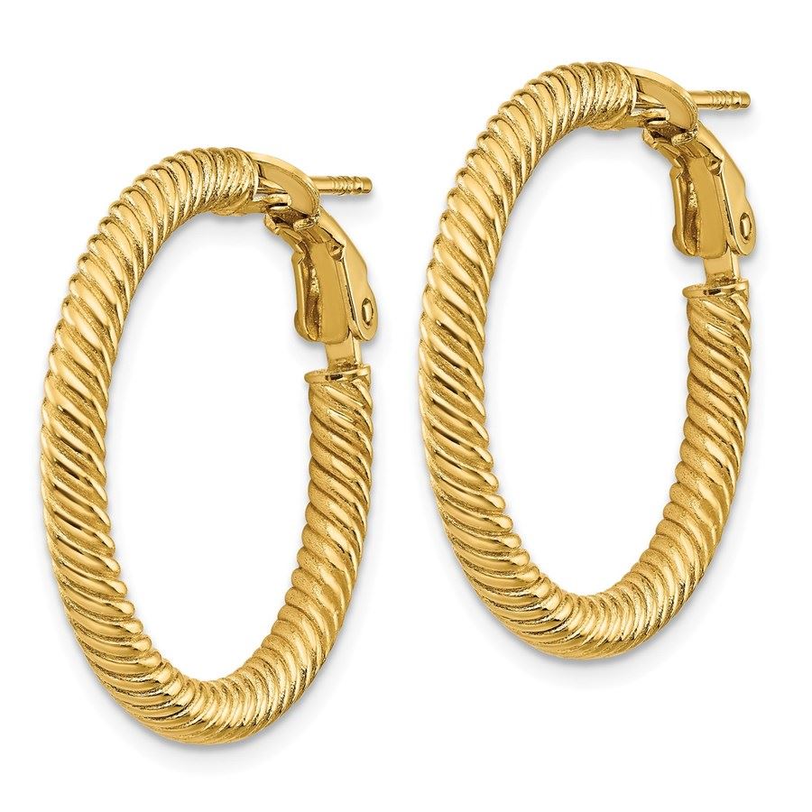 14k Yellow Gold Twisted Round Omega Back Hoop Earrings - 3x20 mm