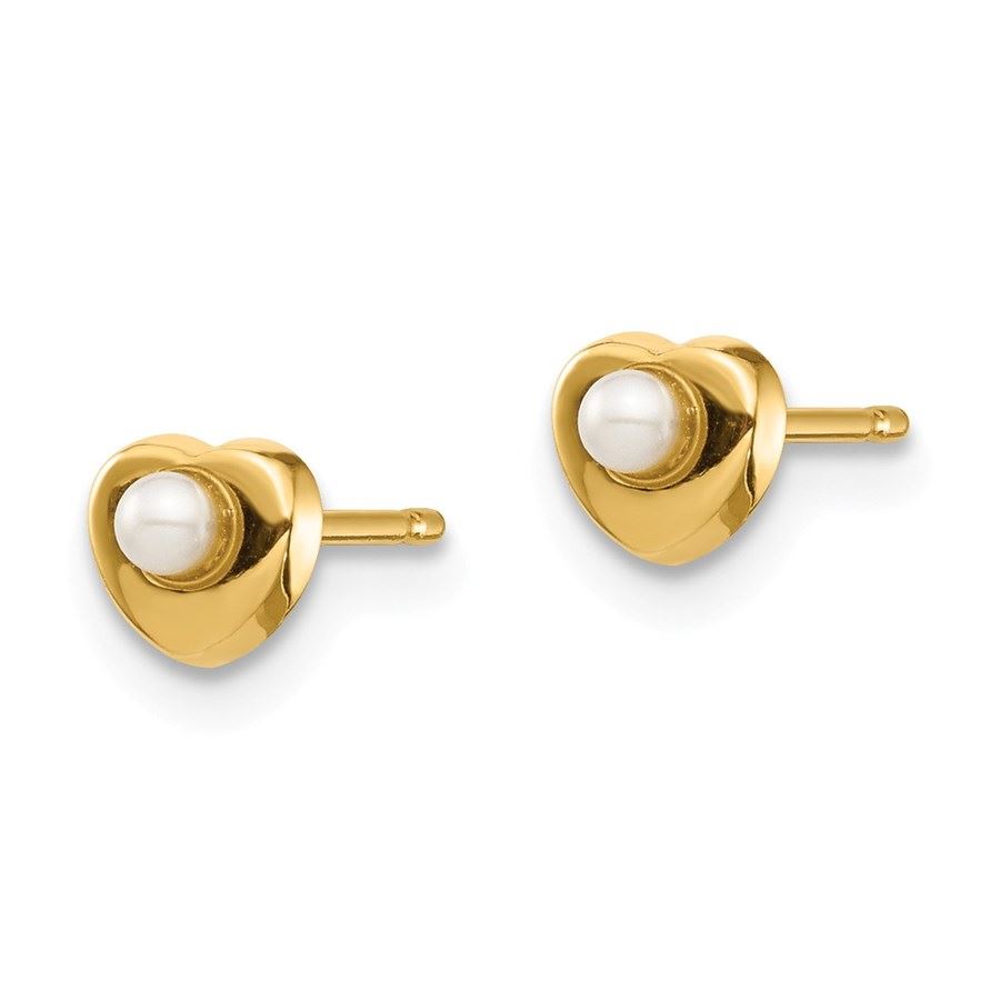 14k Yellow Gold White Button Pearl Heart Post Earrings