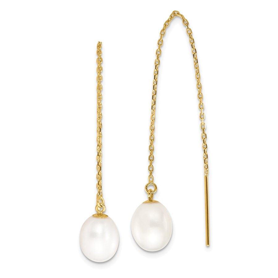 14k Yellow Gold White Rice Pearl Cable Chain Earrings - 7-8 mm