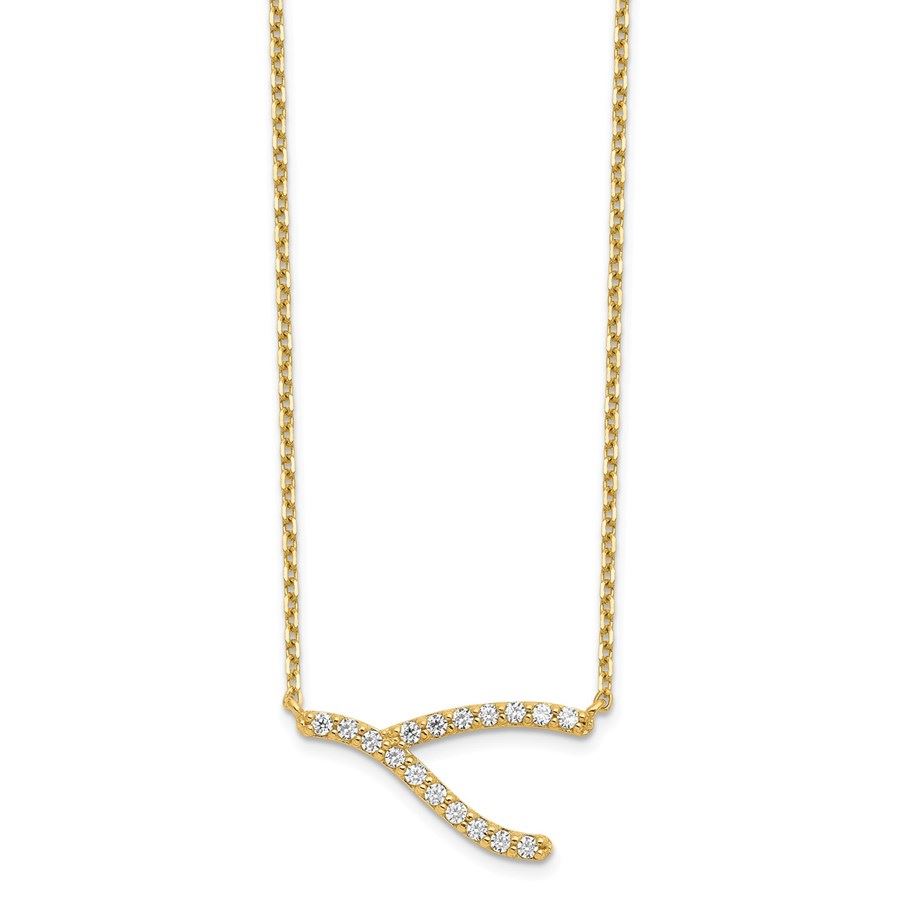 14k Yellow Gold Wishbone CZ Necklace - 20 in.
