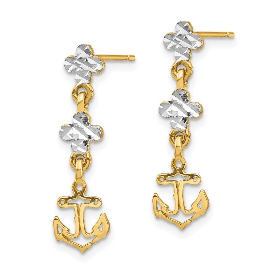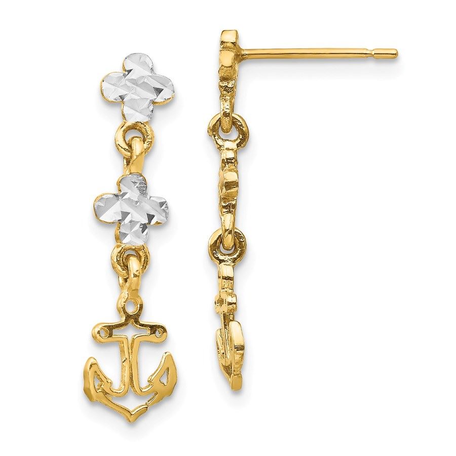 14k Yellow Gold w/Rhodium Anchor Dangle Post Earrings