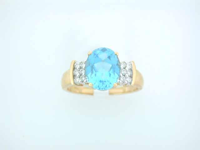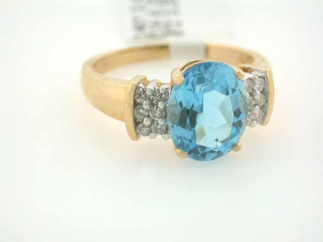 This is a 14k Yellow Gold with Topaz and Diamonds. The Topaz is 3.25 carats, Blue color and the Diamonds are 0.18 carat, 12 pieces, round cut. The ring size is 6.5 and weighs 3.40 grams.