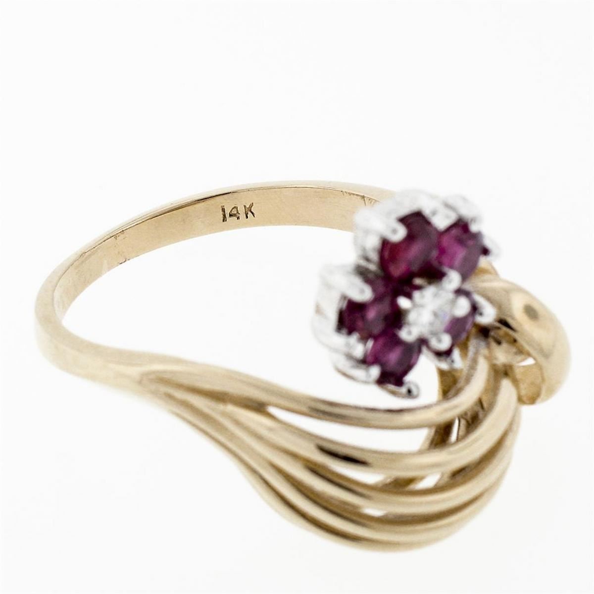 14k Yellow & White Gold Open Domed Ring w/ 1.05 ctw Round Ruby & Diamond Flower