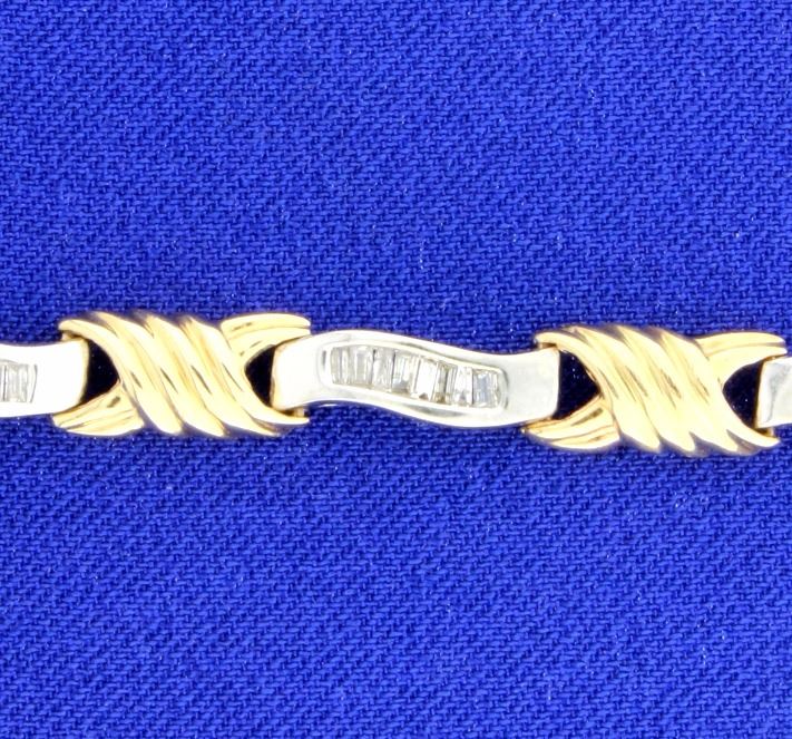 14k yellow and white gold diamond bracelet. 6 3/4 inches. 1.5ct TW of diamonds. G color/SI clarity. 11.2g