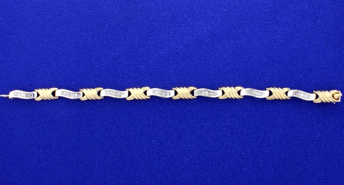 14k yellow and white gold diamond bracelet. 6 3/4 inches. 1.5ct TW of diamonds. G color/SI clarity. 11.2g