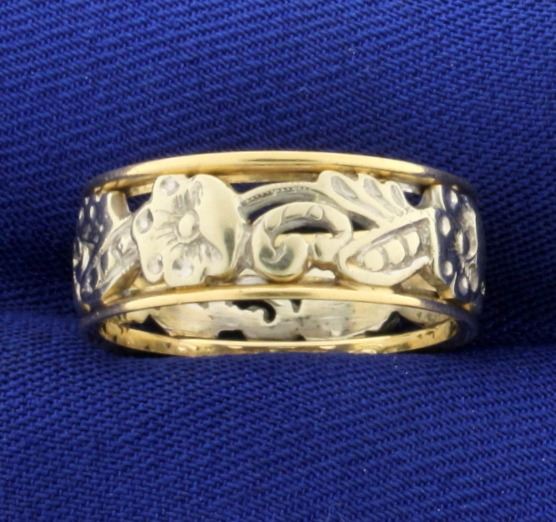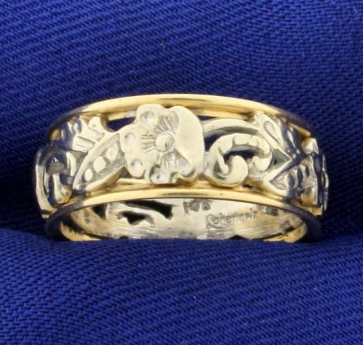 In 14k yellow and white gold. 7.25mn wide. Size 8. 4.8g.