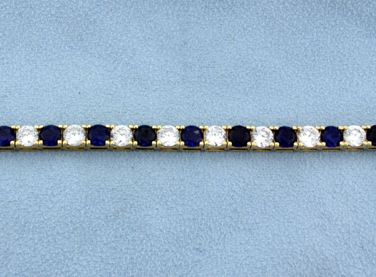 Get an amazing look for a very low price. 14k yellow gold bracelet with 17 cz and 17 lab sapphires. Looks like almost 9 ct of diamonds! 7 inches. 20.1g.