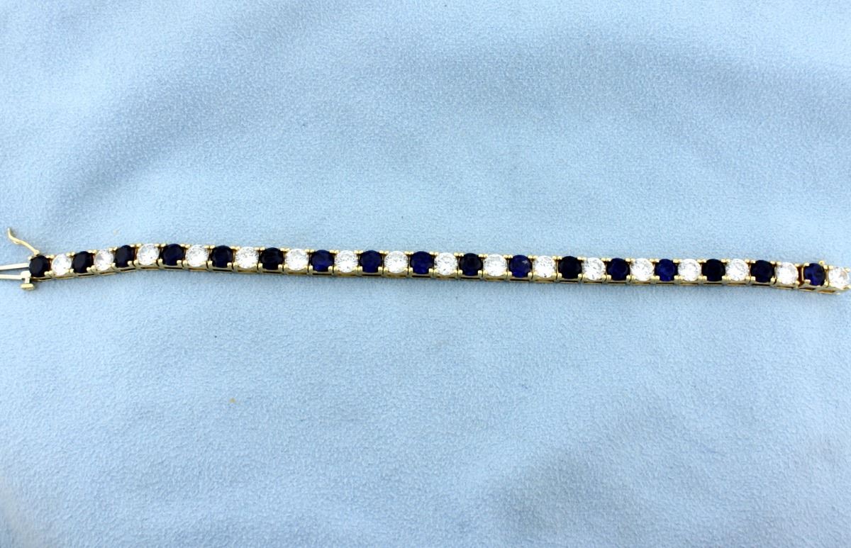 Get an amazing look for a very low price. 14k yellow gold bracelet with 17 cz and 17 lab sapphires. Looks like almost 9 ct of diamonds! 7 inches. 20.1g.