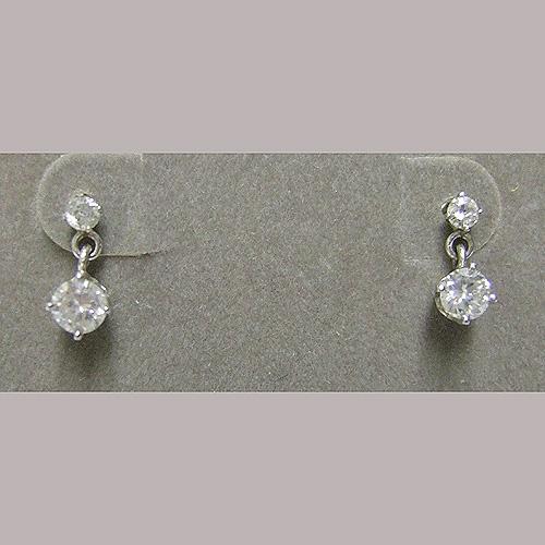 14k white gold and diamond drop earrings; pierced post top holds one 10 point diamond and one 30 point diamond ; total length is 1/2"; weight 1.0 dwt/1.6 grams (no visible defects)