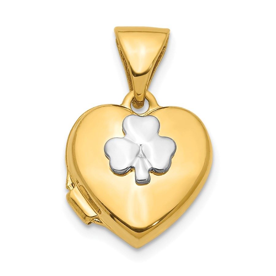 14k with White Gold accent Clover Heart Locket Pendant - 16 mm