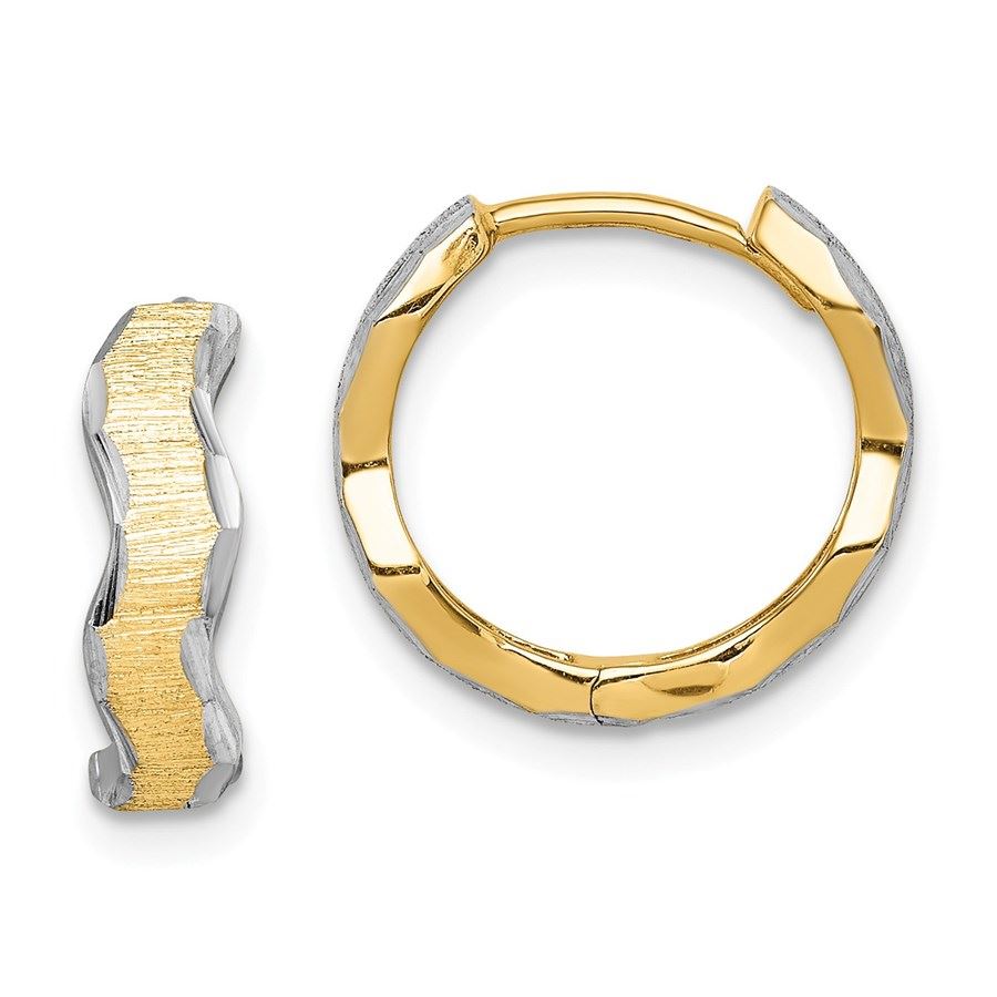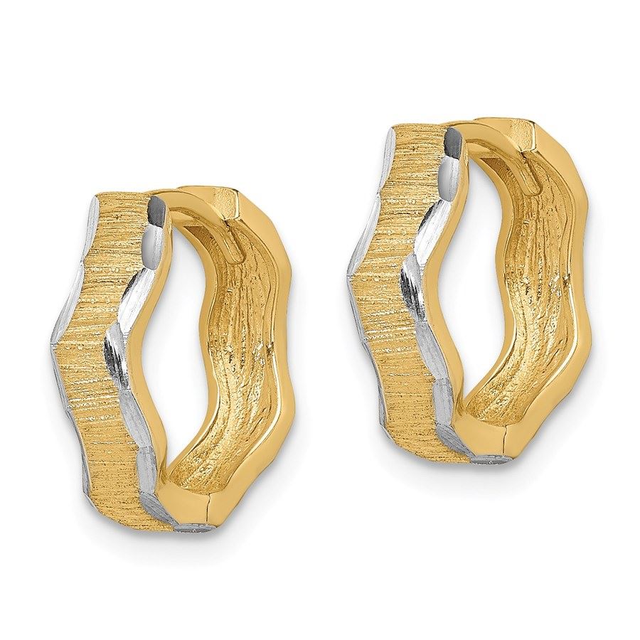 14k with White Rhodium D/C Texture Wave Hoop Earrings