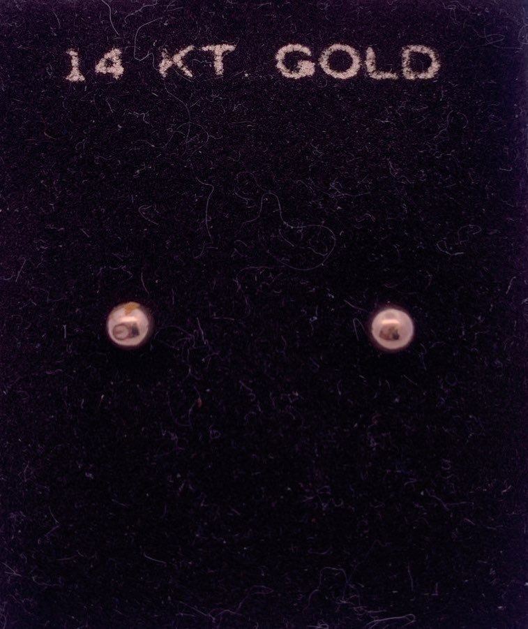 14k yellow gold ball studs with slight dents --see photos; also comes with extra 2x of 10k gold backings; weight of studs is 0.21 grams; weight of backings is 0.12 grams each.