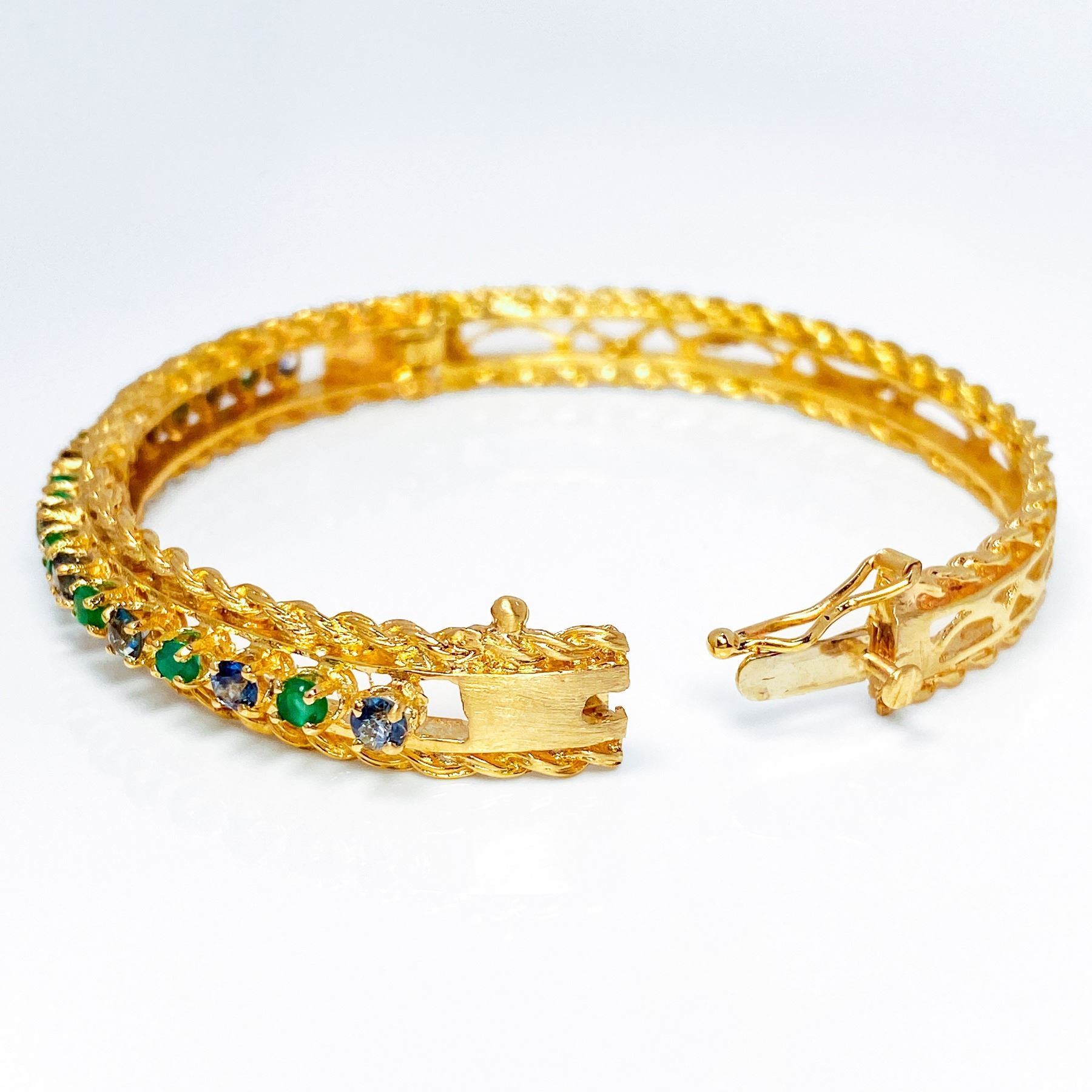 14k yg Bangle Bracelet with Tanzanite & Emerald
