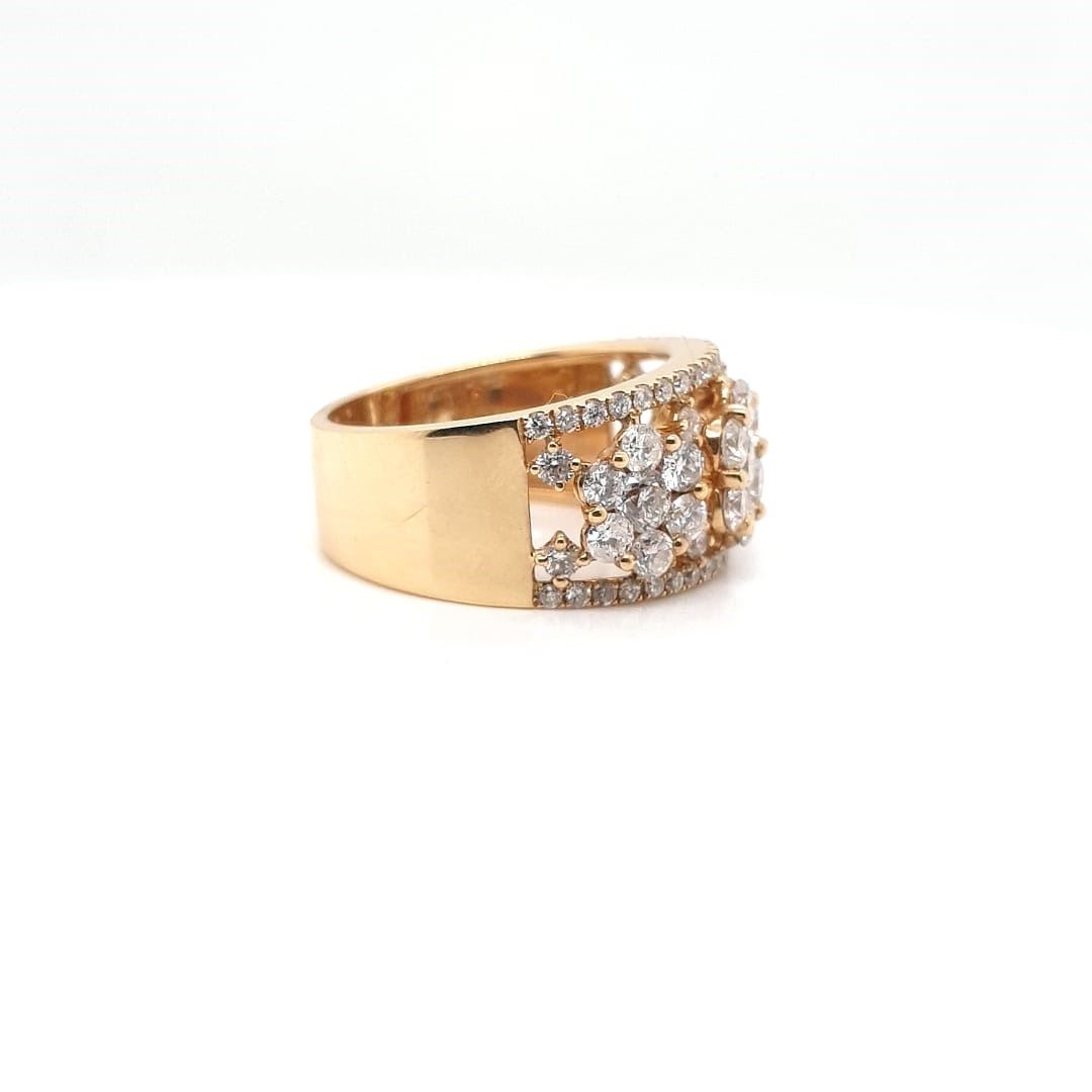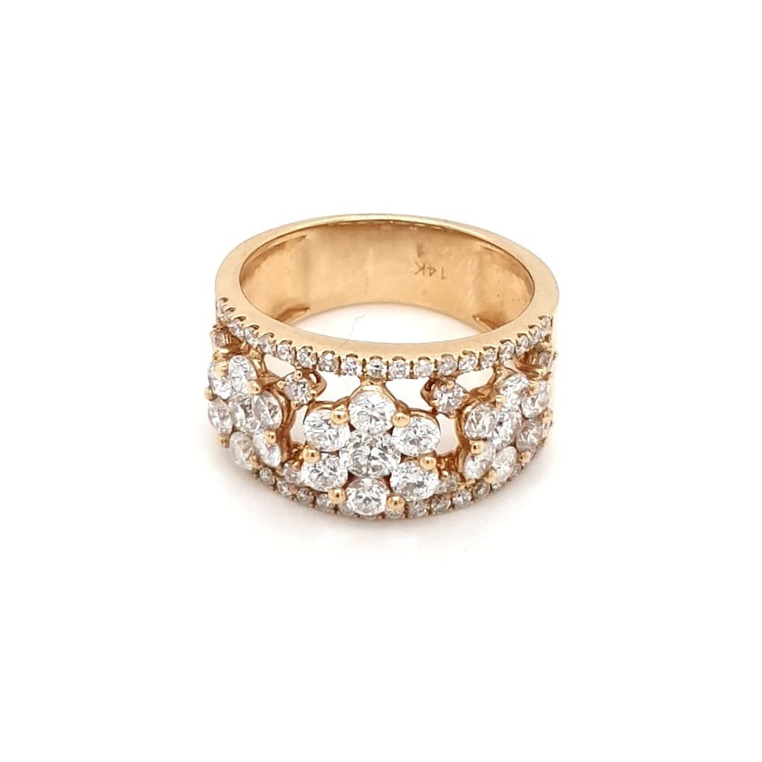 14Kt Yellow gold Diamond Ring with 2.33ct Full Cut Round Diamonds in center as flower Design and diamonds on either side of the Flower Design   Color G-H, Clarity Si1- Si2 , 14kt Yellow Gold , Natural White Diamonds  , total Diamond Weight 2.33CT , size 7 , free Sizing +/- 2 Sizes , New From Manufacture.
