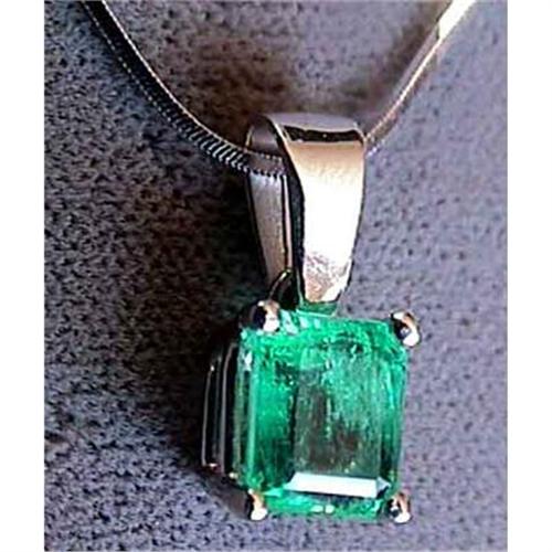 14kt White Approximately 1ct Emerald Pendant Necklace, with a nice Columbian emerald sliding pendant on a fine satin finish 14kt gold chain approximately 18 inches in length, approximately 4 grams in weight and would make a great gift for that special someone.