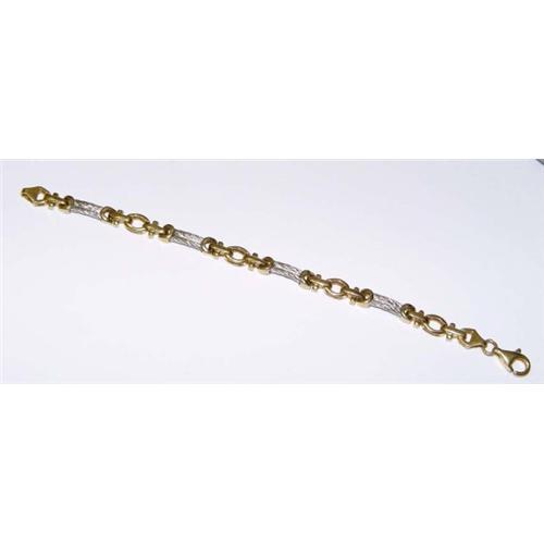 Stylish and popular 2 tone 14kt white gold double strand rope twist bars conjoined with 14kt yellow gold link bracelet which would make a great gift.