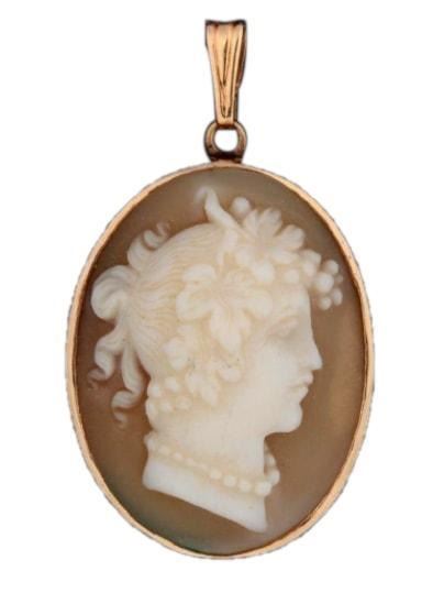 14kt Gold Carved Shell Cameo Brooch Pendant