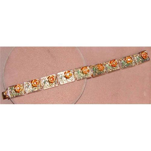 Vintage 14kt yellow gold and diamond highly detailed open work and high relief enamel Art Nouveau style lady's Bracelet which would make a superb gift or addition to any fine collection. , Size: 7.675 inches (length)15mm (width), 46 (grams). Comes in a nice presentation gift box.