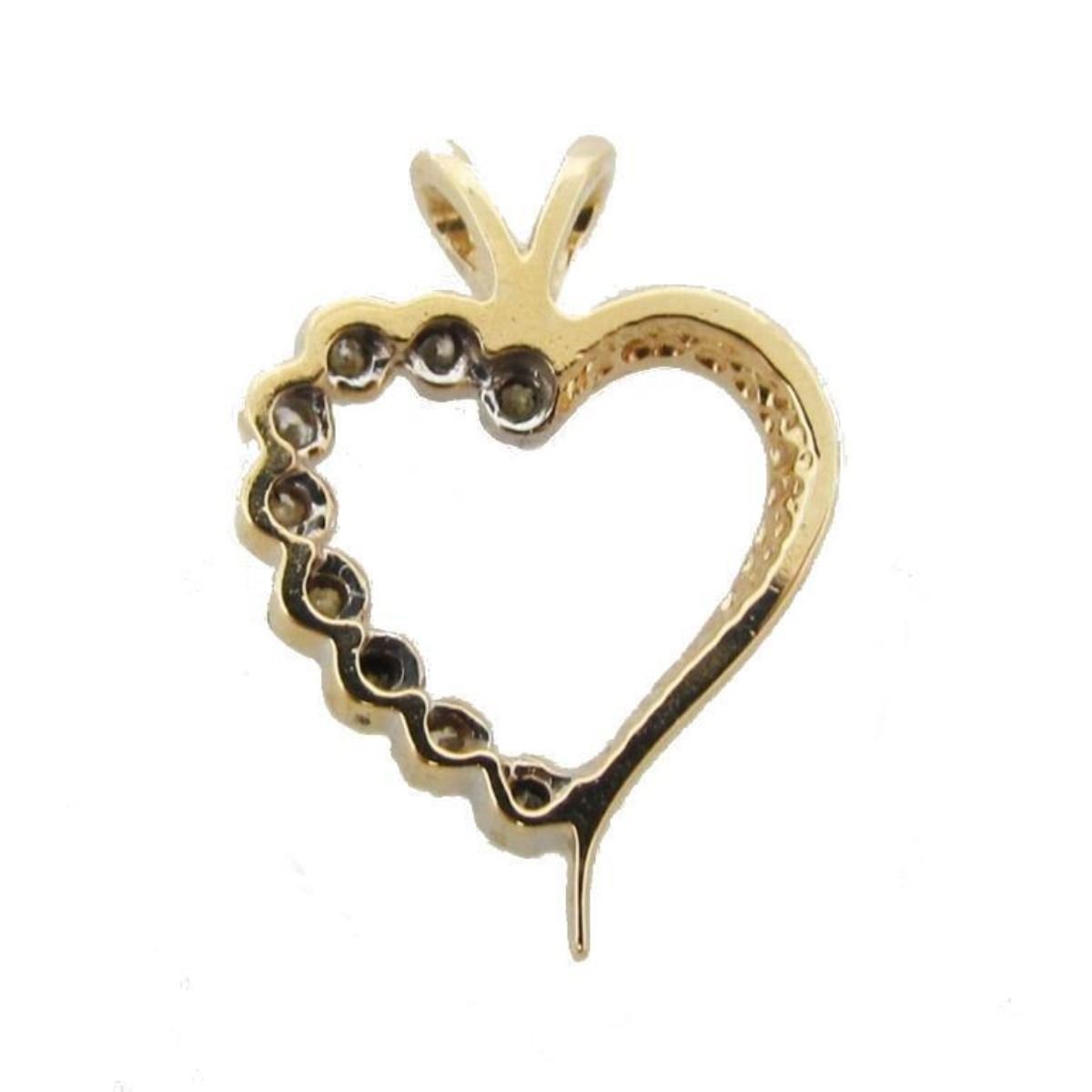 14kt yellow gold heart pendant with nine small diamonds, ( approx. 0.07 tcw ). 3/4" X 1/2".