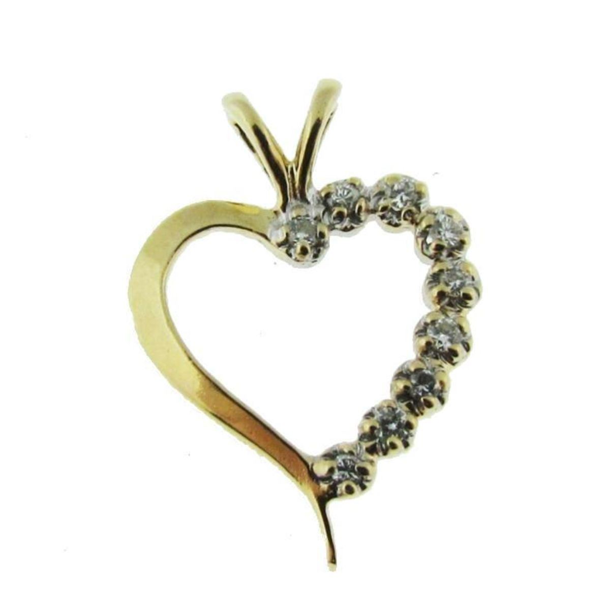 14kt yellow gold heart pendant with nine small diamonds, ( approx. 0.07 tcw ). 3/4" X 1/2".
