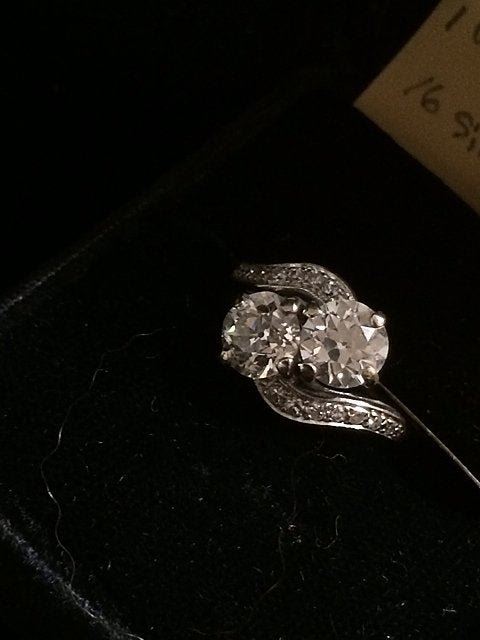 Hand made Bypass 14kt gold ladies ring, c. 1940's - 50's. 1 Old European Cut Diamond VVS2 - VS1 1.03ct. 1 Old European Cut Diamond JK VS1-VS2 .99ct. 16 single cut diamonds, .25 ct. total weight.