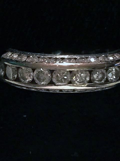 14kt White Gold Diamond Ring band. Over 30 diamonds, set on top, back and front, could go as adjourning wedding band with previous ring in lot #16. Beautiful band, where alone or make bridal set! Perfect Holiday gift for her!