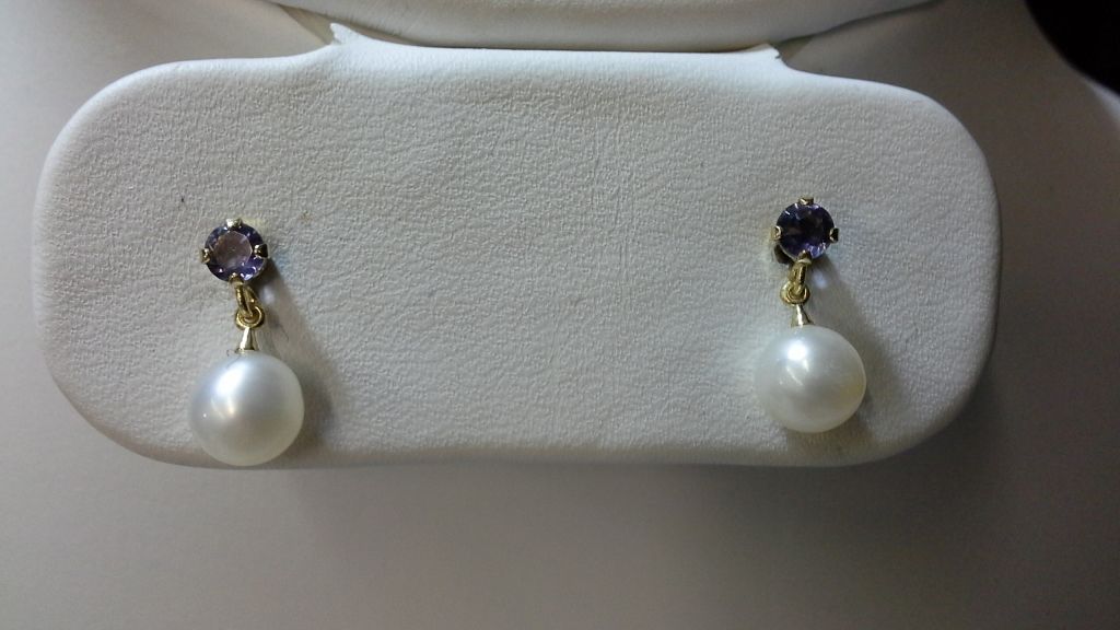 14kt Gold Earrings With Genuine Pearls and Iolite
