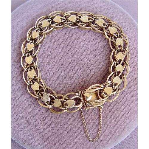 <tr><td>Title:14kt Gold HEART Link BRACELET 14k Hearts</td></tr>