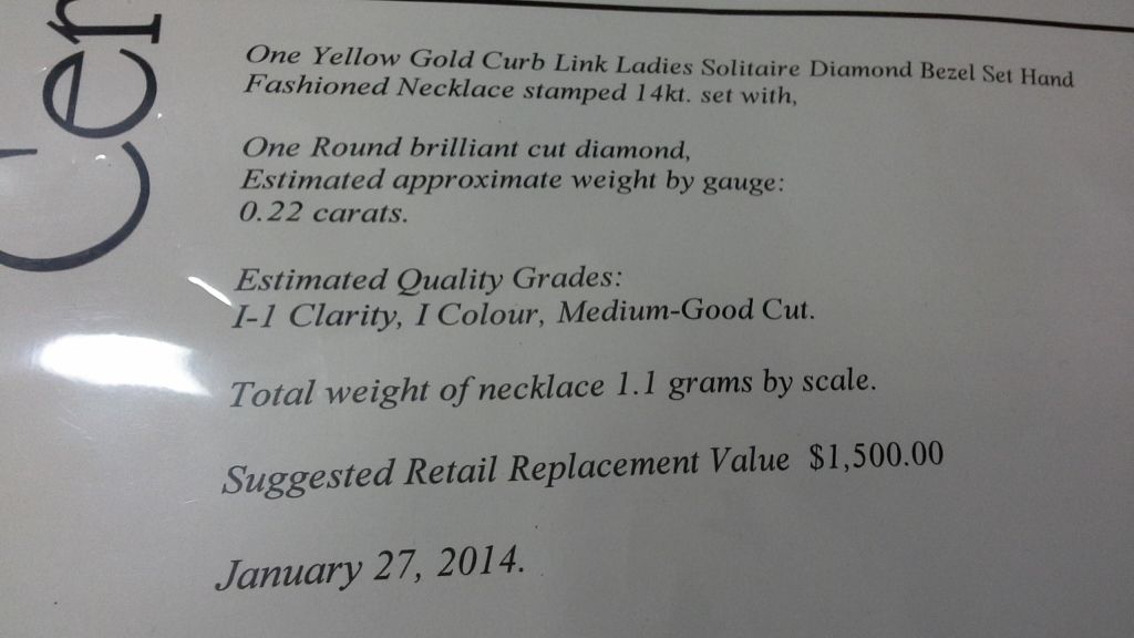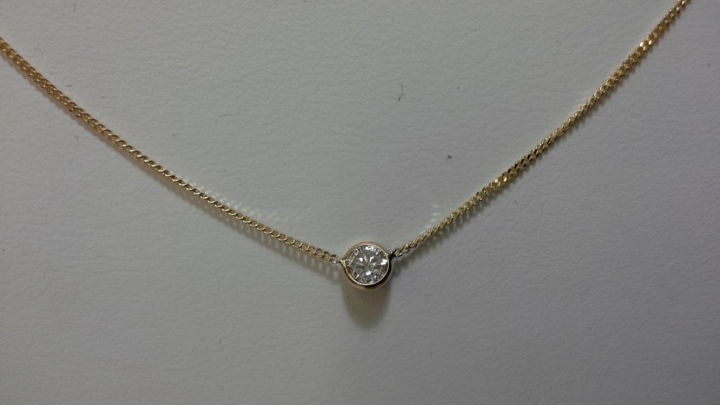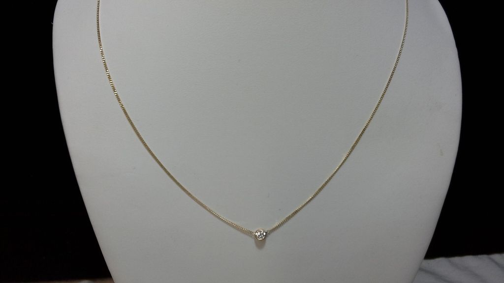 14kt Gold Necklace and Pendant With Genuine 0.22ct Solitaire Diamond (Insurance Replacement Value $1,500)