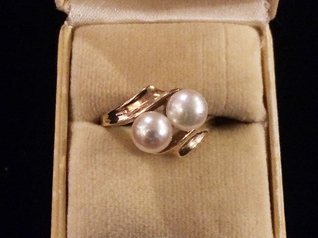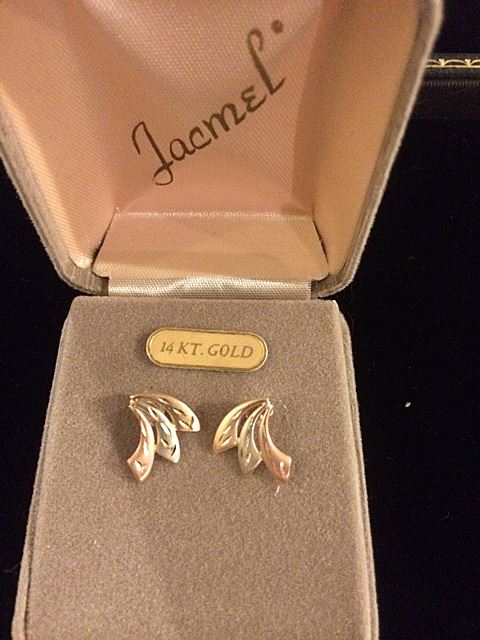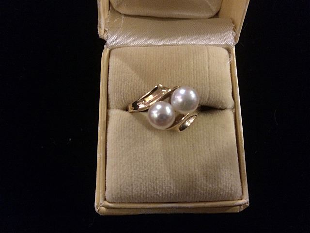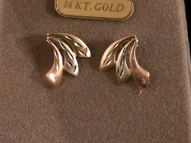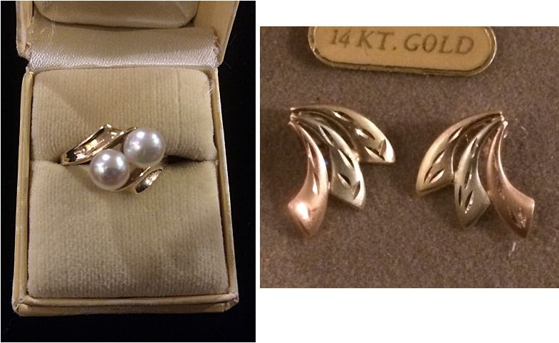 Estate 14kt Gold pearl ring and 14kt tri color gold earrings.