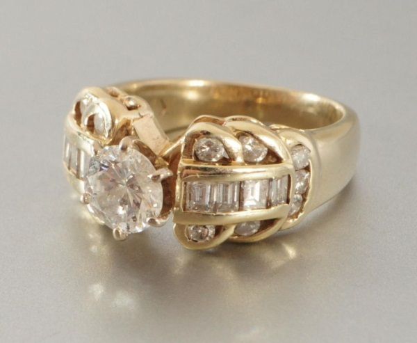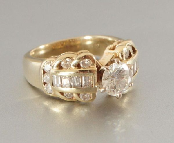 14k yellow gold, 1.85ct total diamonds, center stone .85ct. With appraisal, approx appraised value $4950.00