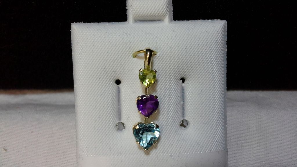 14kt Gold and Genuine Peridot, Amethyst and Blue Topaz Pendant