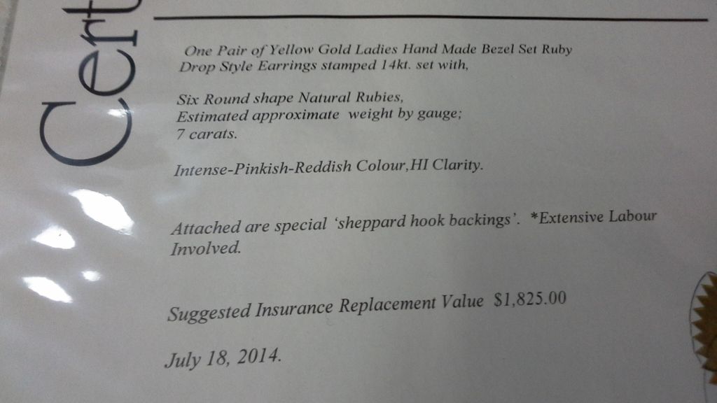 14kt Gold and Genuine Ruby Drop Style Earrings (Insurance Replacement Value $1,825)