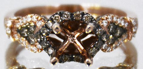 14kt Rose Gold w/ .21cttw Round White Diamond .49cttw Round Chocolate Diamond With Head size 7.25