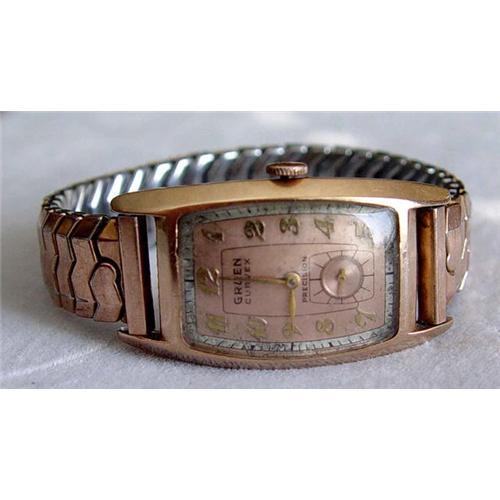 <tr><td>Title:14kt Rose Gold Gruen Curvex Watch Wristwatch</td></tr>