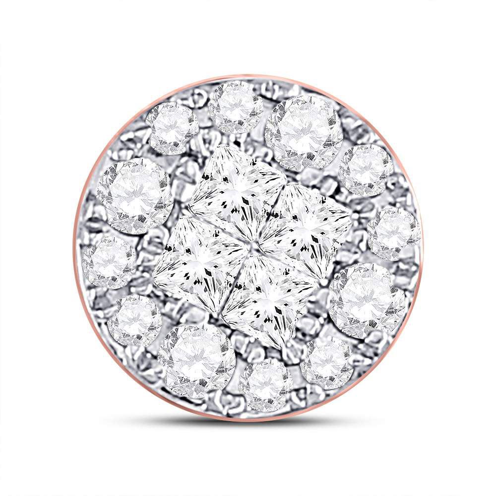 14kt Rose Gold Womens Princess Round Diamond Cluster Pendant 1/4 Cttw