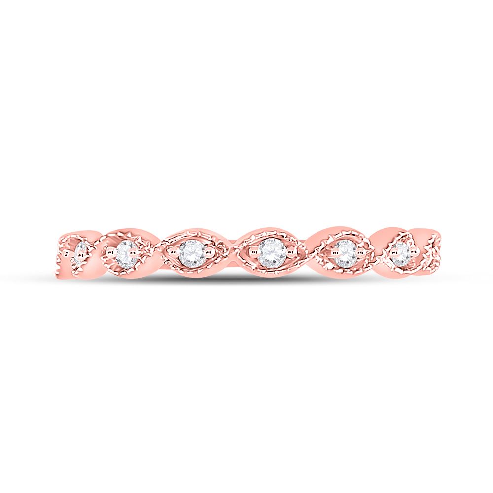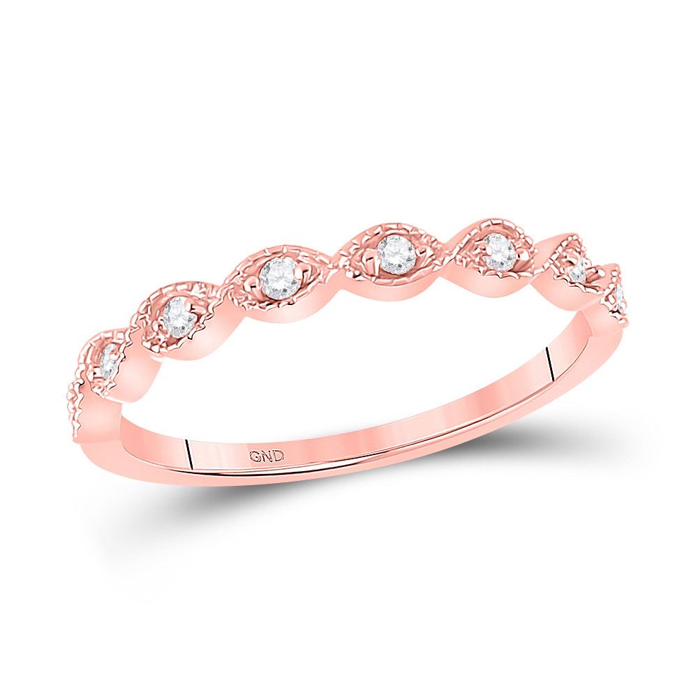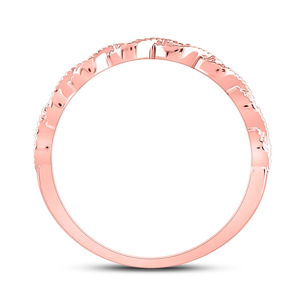 14kt Rose Gold Womens Round Diamond Twist Stackable Band Ring 1/10 Cttw