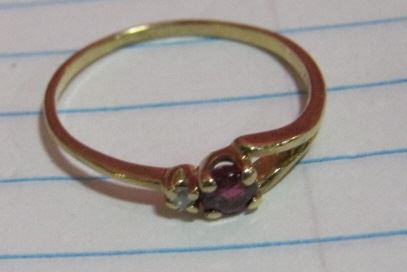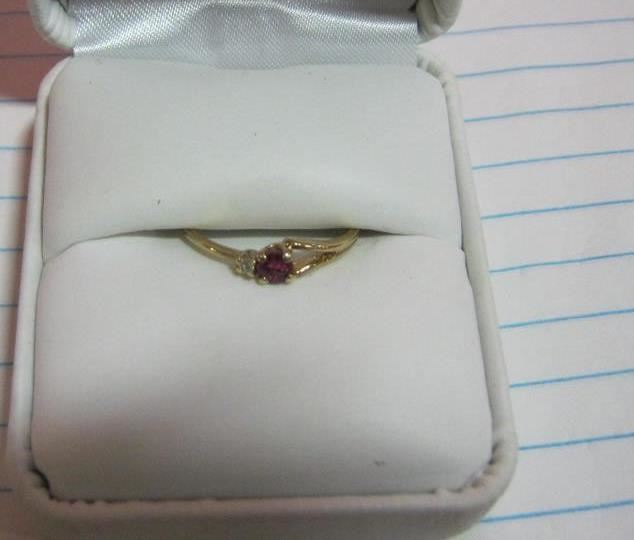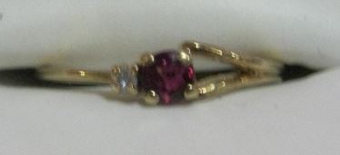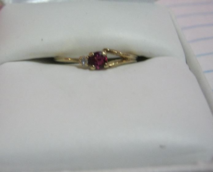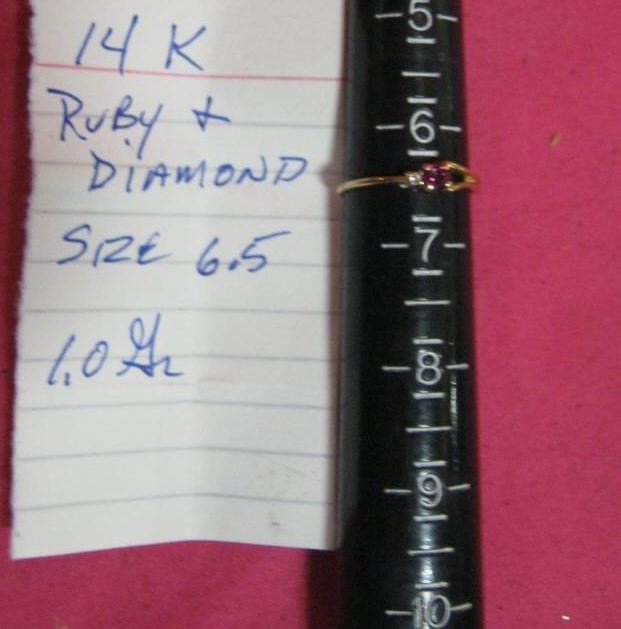 Size 6.5 1.0 gr. ruby is approx. .25 with a small diamond at top of ruby