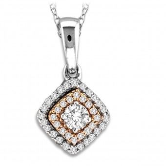 14kt two tone Diamond Pendant with Full cut round Diamonds set in a double "Halo" Style with a Larger diamond in the center.