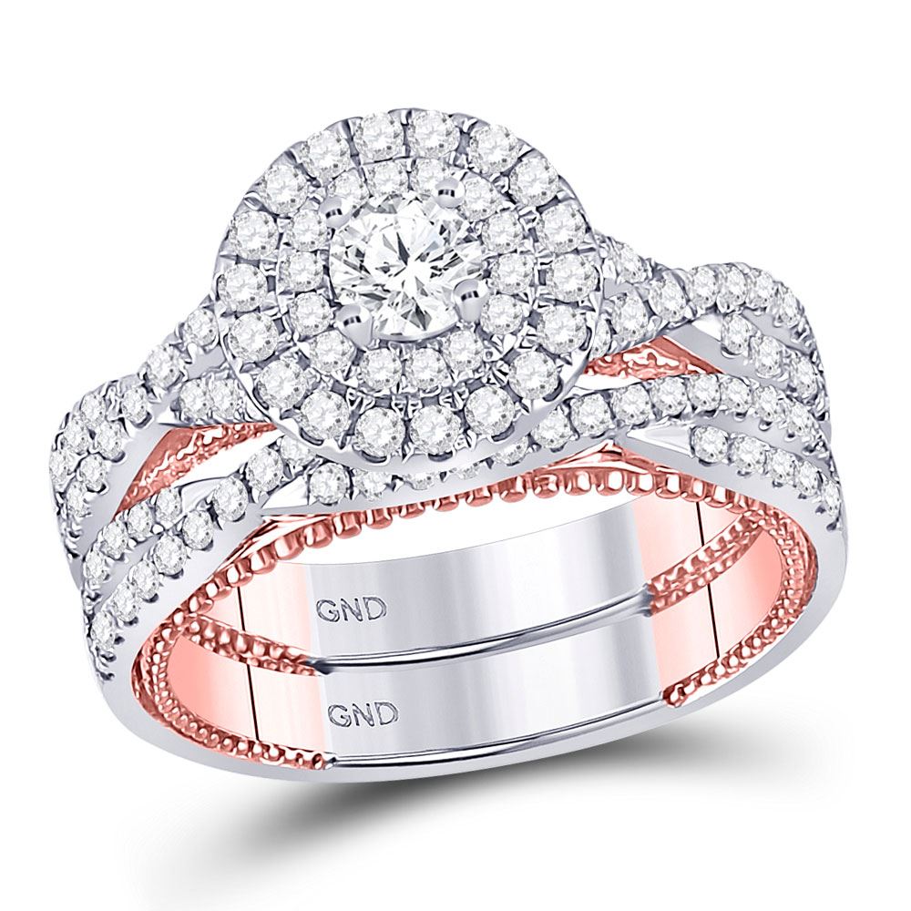 14kt Two-tone Gold Round Diamond Bridal Wedding Ring Band Set 1-3/8 Cttw