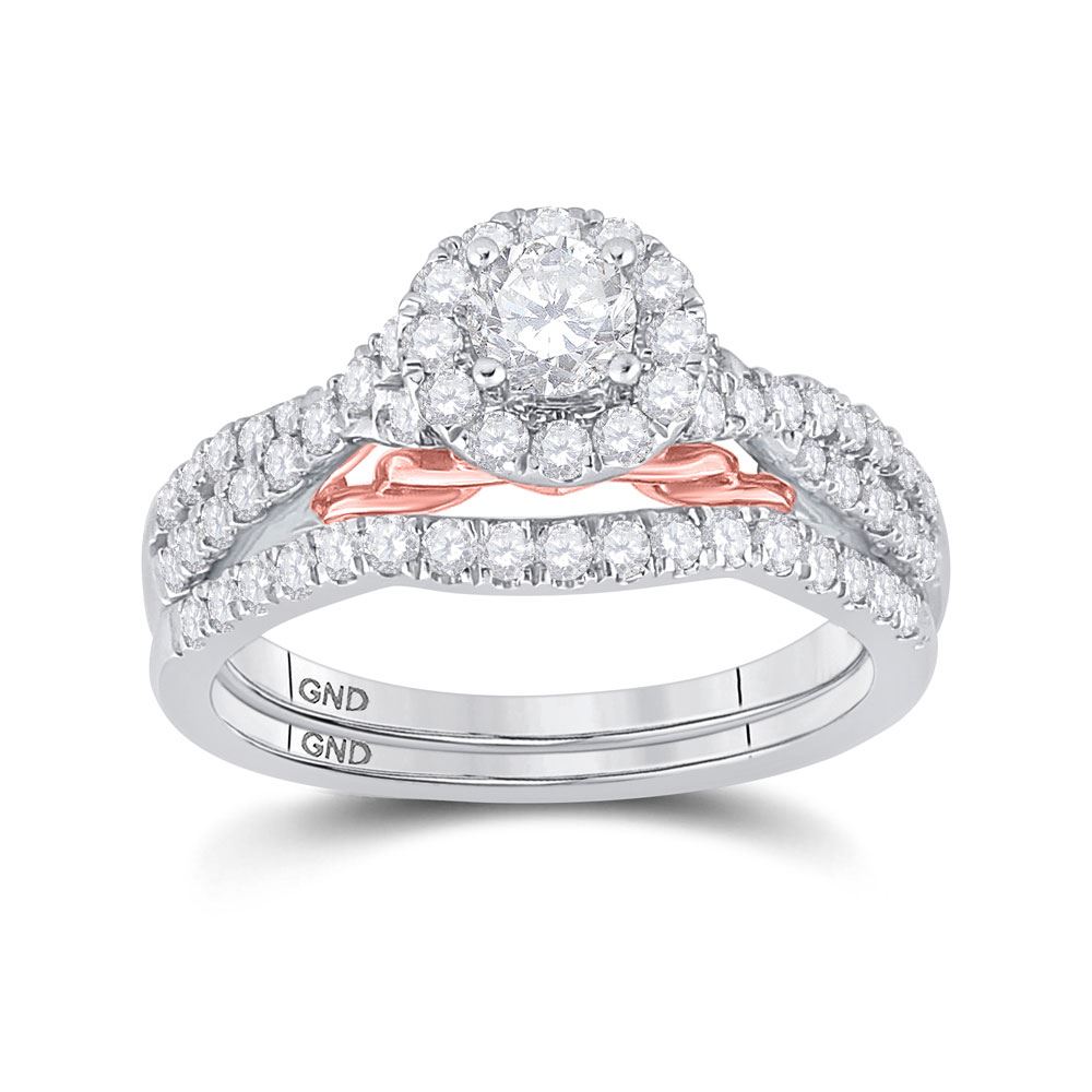 14kt Two-tone Gold Round Diamond Bridal Wedding Ring Band Set 1 Cttw