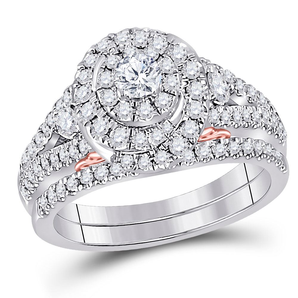 14kt Two-tone Gold Round Diamond Bridal Wedding Ring Band Set 1 Cttw