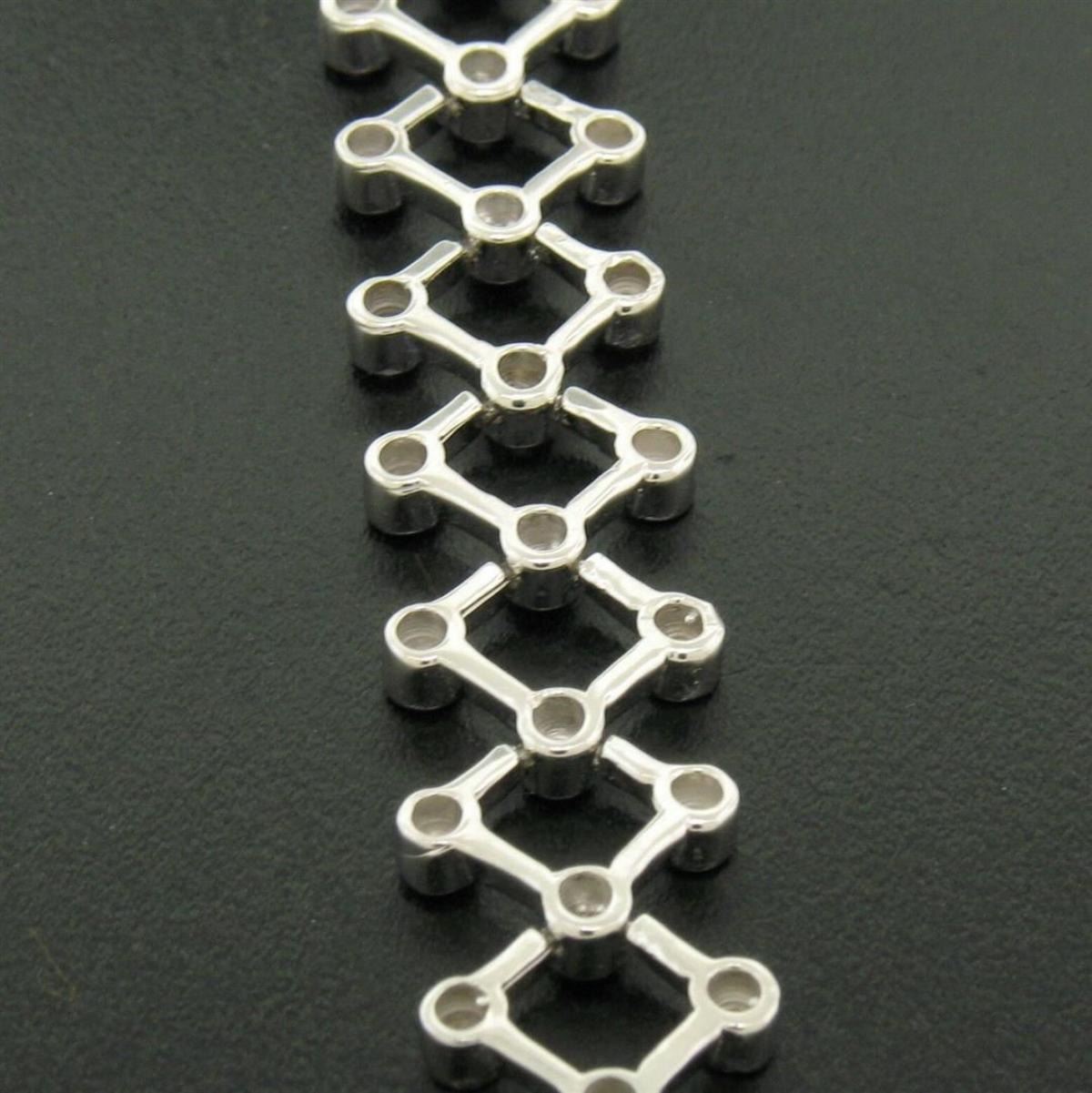 A like new 14kt white gold trellis bracelet with 0.90ctw of round diamonds (G/H - SI1). It weighs a total of 15.6 grams, measures 11.6mm wide, and measures 7 inches in length.